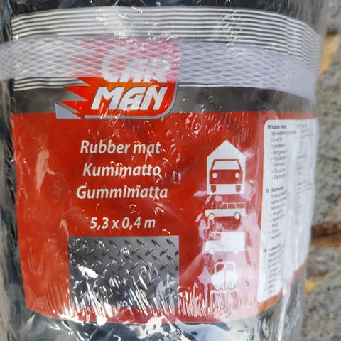 Monikäyttöinen kumimatto, suojaa ja kestää kulutusta, leikkaa haluamaasi muotoon, autoon, pakettiauton tavaratilaan, kuorma-autoon, veneeseen, asuntovaunuun, kotiin, varastoon, autotalliin ym. Vahvuus 3 mm.