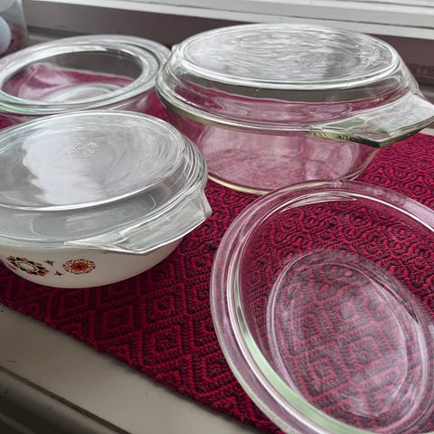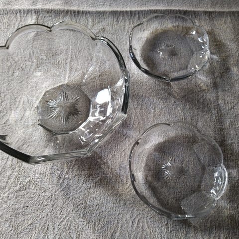 Vanhat lasiesineet 4x lautanen 2x iso tarjoilukulho