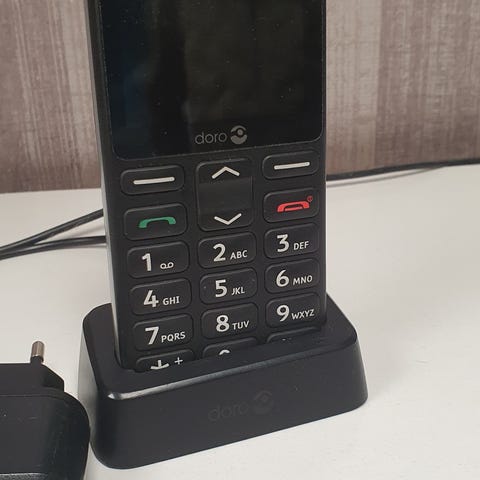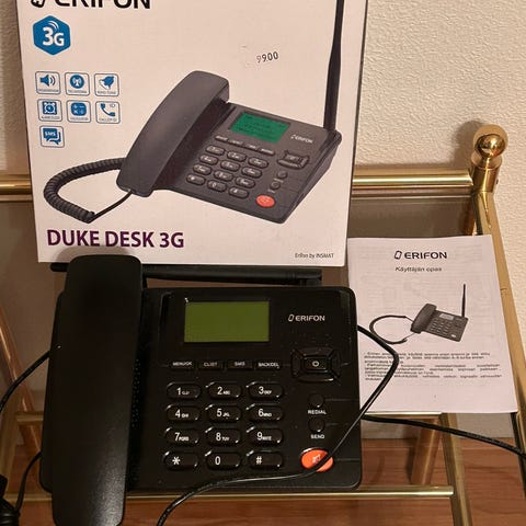 Doro GSM pöytäpuhelin jossa on sim-korttipaikka paristokotelon kansi puuttuu mutta ei haittaa käyttöä. Toimii verkkovirralla ja paristoilla.