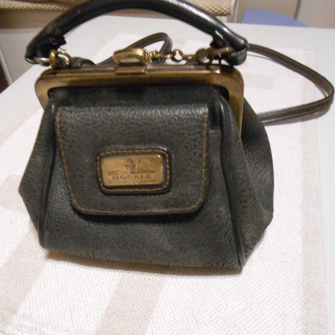 Nahkainen Migant merkkinen musta iltalaukku punoksilla, hinta 5 euroa + postikulut