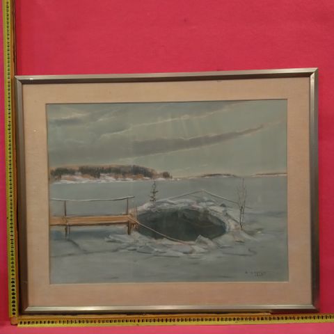 Taulu hopean hohtoisella puukehyksellä, nurkkakiilat.