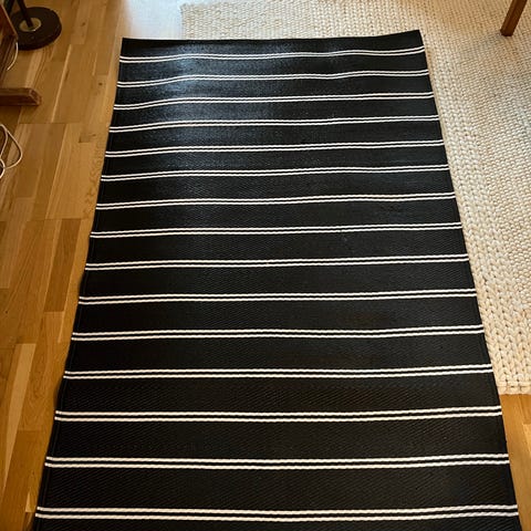 Uudet beige-valkoraidalliset matot 120x62, 7 e/kpl