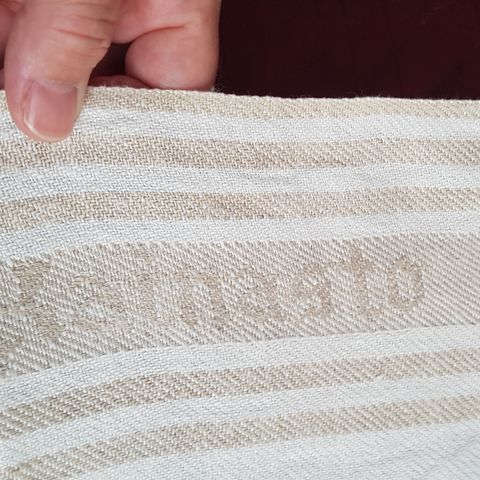 Jokipiin Pellava Oy:n valmistama pellavainen pyyheliina. Uudenveroinen, käyttämätön eikä tahroja. Pyyhkeen reunoilla on teksti Halsua. Koko 125x69 cm.
