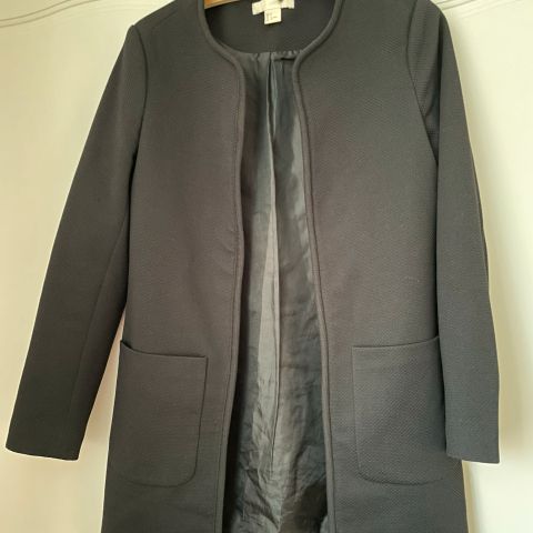 Tummansininen muotoonleikattu jakku. Koko 38, H&M. Jäänyt itselläni käyttämättä, joten uusi.