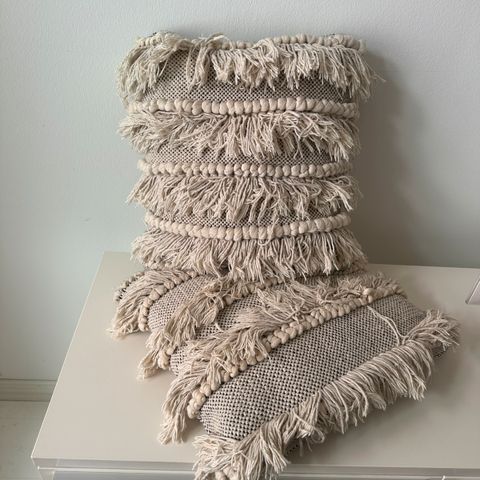 Laadukkaat sisustustyynyt, sohvatyynyt, koristetyynyt. Leveys noin 40 cm. Tyynyjä on kaksi. Materiaali on olkea.