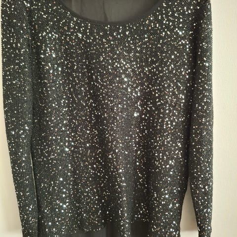 musta paljettineuletakki, käyttämätön, koko 38/40, napit edessä, siisti, ehjä, pling pling.