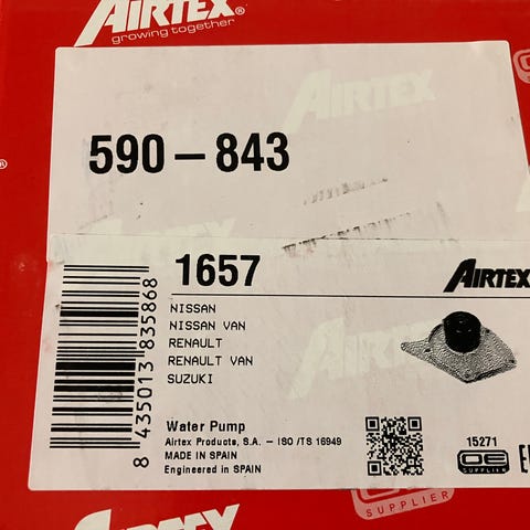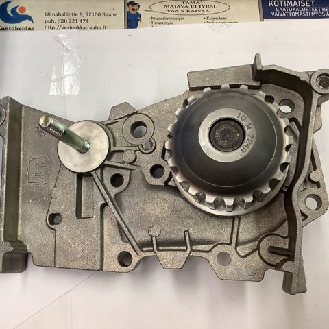 Uusi TRW:n teharinpumppu Renault-sukuisiin autoihin. Osittainen sopivuuslista kuvassa. Tämä on nyt sitten ilmeisesti ns. TRW yleismalli eli korvaa useita alkuperäisiä osanumeroita, mutta siivapyörä/laippa otettava vanhasta pumpusta ja prässättävä tämän akseliin eli tässä ei ole mukana minkäänlaista siivaa tai sen kiinnityskohtaa.