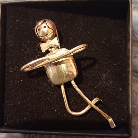 Sterling hopeinen (925) UPM rintaneula. Pituus 7,3 cm ja leveys 1,8 cm.