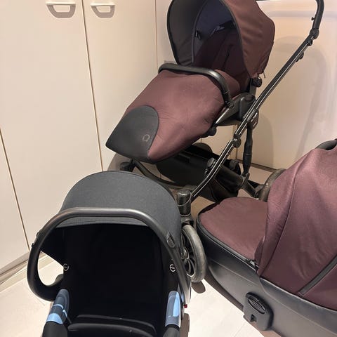 Turvakaukalo autoon jonka saa kiinnitettyä myös rattaiden runkoon. Erikseen ostettu auton turvakaukalolle telakka. Telakka isofix kiinnityksellä.