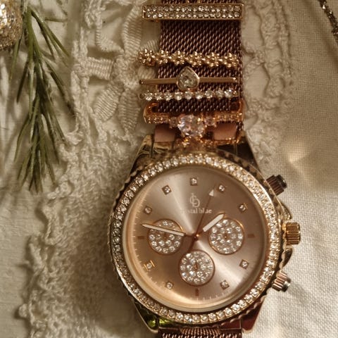 Trend News upea strassikoristeinen rannekello, kellotaulun halkaisija reunuksineen n. 3,7 cm. Vähän käytetty, siistikuntoinen.