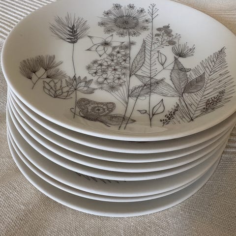 8 kpl lasisia kahvikuppeja ja leipälautasia