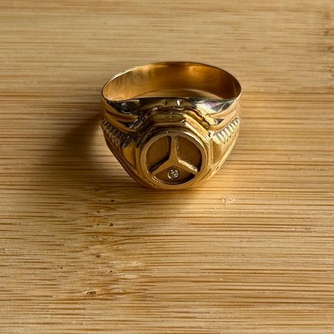Kultainen 14 karaatin BMW kultasormus,halk.n.22mm, paino 11g