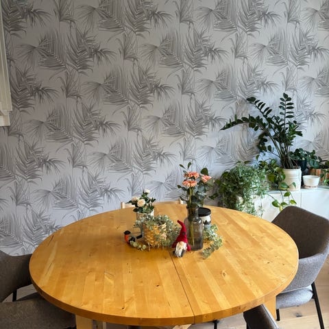 Massiivipuinen koivusta tehty ruokapöytä, missä jatkopala ja irroitettavat jalat.