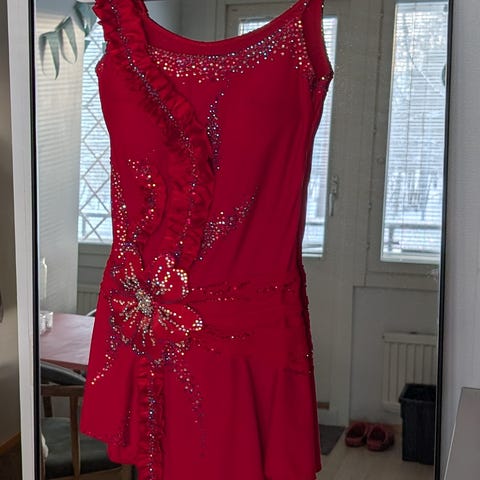 Myydään ihanan hopean värinen lattarimekko. Mekko on kokonaan strassattu. Näkyy todella hyvin tanssilattialla. Hyvin liikkuva. Koko XS-S.
