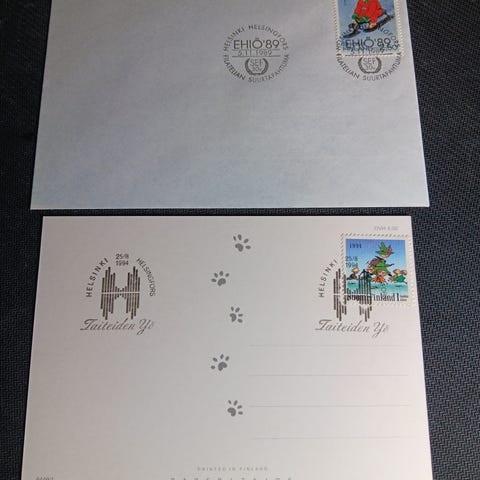 Leimattuja, merkkeineen. Mukana 4 erikoisleimaa ; Philexjeunes 9130.3.1991, Albert Schweitzer 11.1.1975, Philatelie 12 nivose1989 ja Bicentenaire dela revolution 1989.