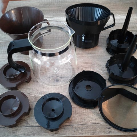 Sopii KB 741 malliin. Vesiputkea ja -letkua lukuunottamatta kaikki vesisäiliön vaihtoon liittyvät osat. 10 kupin säiliö ruuveineen ja tiiviteineen. Lasiputken kumiholkki. Umurinkoho, siihen liittyvä letku ja holkki sekä rosterikansi. Mikrokytkin ruuveineen. Osat käytettyjä, mutta toimivia. Yhteishintaan 15 euroa