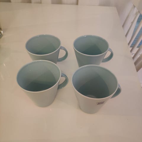 Kaksi valkoista korkeaa Koko mukia. Hinta 9e kpl. Saatavilla myös yksi viininpunainen muki samaa mallia.