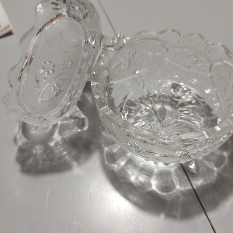 Pienet jalkalasit, kristallia, 10 kpl. Korkeus 9,5 cm. Virheettömät. Yhteishinta 35 euroa.