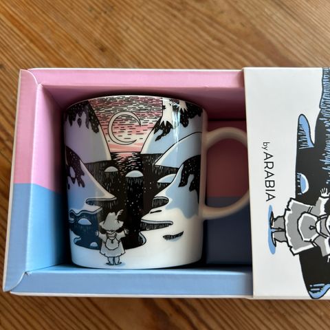 Arabian muumimuki alkuperäispakkauksessa, avattu kuvausta varten. Myös vaihto silmälasit Toven Juhla 2014 mukiin. Mukeja 4 kpl.