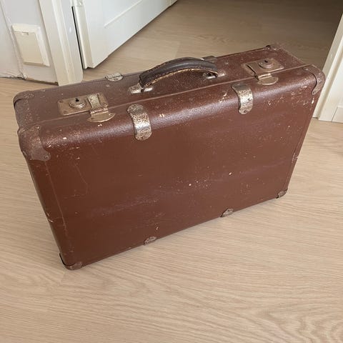 Vanha matkalaukku. Avain hukassa.