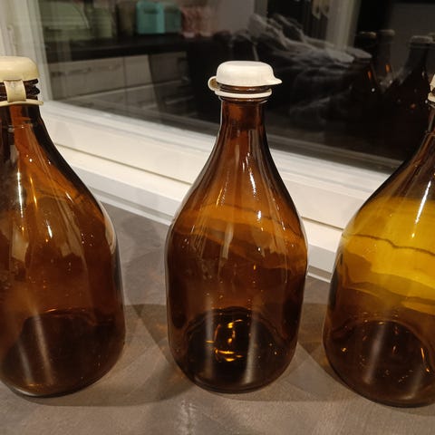 Porin oluen verosta vapaa kaljapullo vanhassa laatikossa