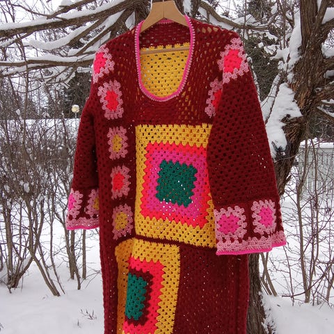 Pitsipusero, tunika, käsinvirkattu, käsityö, hyvälaatuisesta merceroidusta puuvillalangasta tehty, ei kutita ja voinpestä pesukoneessa , kainalo-kainalo noin 62 cm, pituus noin 63 cm eli vastaa kokoa 40-42.