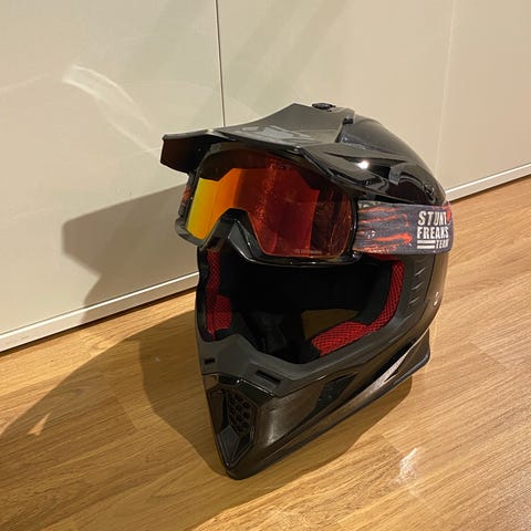 Vuoden käytössä ollut kypärä, muutama näkyvä naarmu, mutta muuten hyvässä kunnossa.