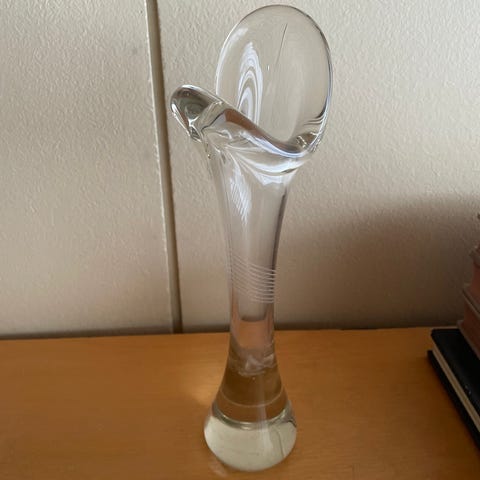 Musta/kirkas humppilan lasimaljakko/kulho. Suunnittelija Pertti Santalahti. 14.5cm korkeus. paino 1318gr. Kiulu.