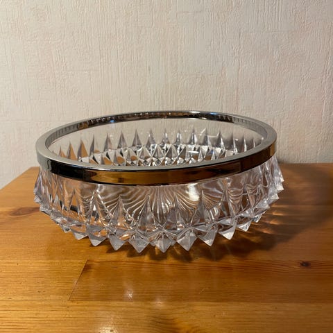 Kaunis ovaalin mallinen kristallinen tarjoiluastia sokerille, karamelleille jne.