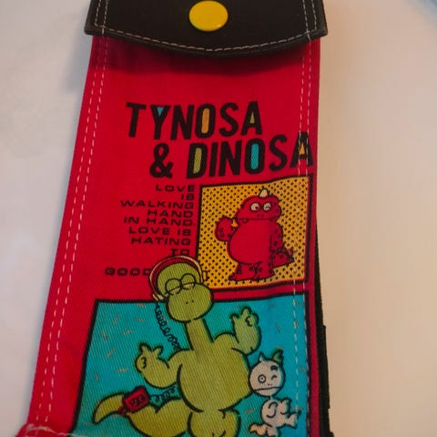 Lontoo-aiheisesta kankaasta valmistettu penaali tai muu pussukka sinisellä vetoketjulla ja punaisella vuorilla. Koko 10x20 cm.