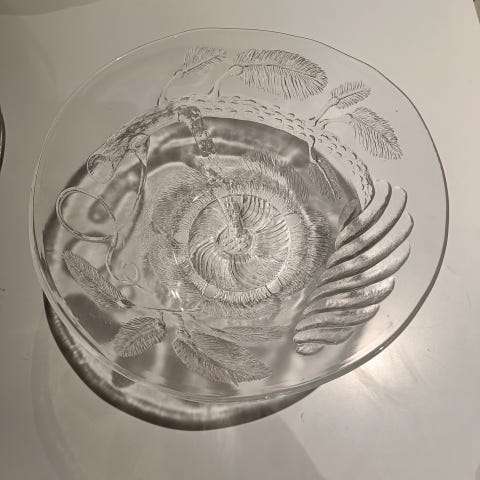 Nuutajärven valmistama, Pentti Santalahden suunnittelema tarjoilukulho Contact -sarjaa.