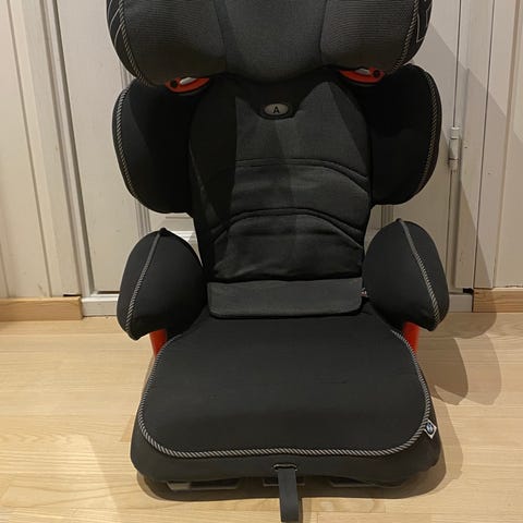 Kahdella lapsella ollut ja siistissä kunnossa oleva istuin 9-18kg lapsille. Kätevä malli, jonka voi kääntää telakassa naama tulo- tai menosuuntaan. Vöiden korkeus pikasäädettävissä. Järeä ja säädettävällä pylväällä varustettu telakka mukaan.