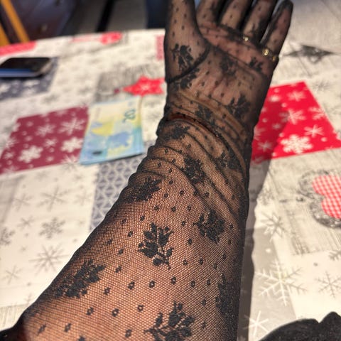 Hakusanoja: musta pitsiset sormikkaat juhlasormikkaat