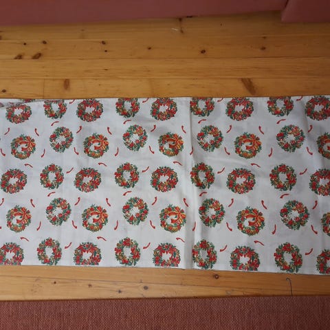 Käyttämätöntä vihreäpohjaista tähtikuvioista kangasta 2 eri palaa, isompi 90x300 3e , pienempi 90x150 2e