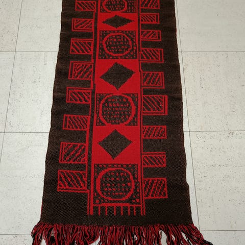 Oranasi/ruskea täkänä villaa. Koko pituus 120 cm ja leveys 32 cm. Pesulan jäljiltä, puhdas, hajuton ja erittäin siisti. Vain nouto.