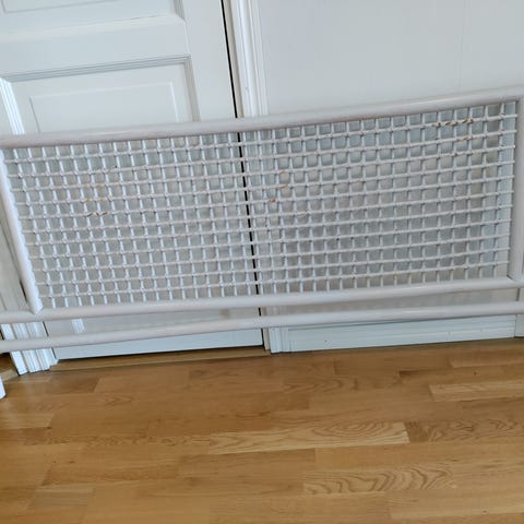 Rottinginsta/metallista valmistettu sängynpääty. Musta metalli/pähkinänvärinen rottinki. Voi kiinnittää seinään tai suoraan runkopatjaan.