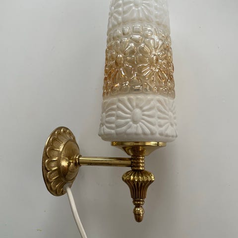 Seinävalaisin 1970-luvulta. Puuta. Kupu lasia. Retrohenkinen.