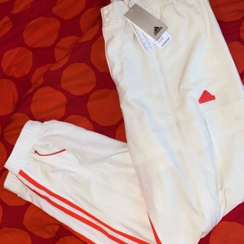 Myydään uudet Adidas naisten todella mukavat housut( itse omistan samanlaiset). Joustava, kosteutta siirtävä materiaali. Leveät, levenevät jalat. Joustava vyötärö. Sisäinen avaintasku takaosa.