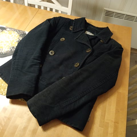 Espritin vain muutaman kerran käytetty hieno tummansininen takki ja nyt väärän kokoiseksi jäänyt. Ei mitään käytönjälkiä. Koko 40. Kai-kai 48 cm. Postitus (6,50).