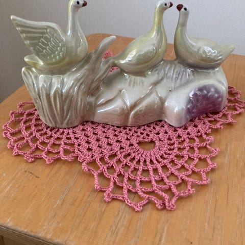 Viimeisestä kuvasta näkyy, miten koristeen langat ovat yhdestä kohtaa katkenneet. Yleisilme on tästä huolimatta varsin siisti!