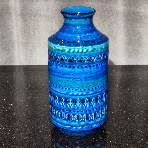 Bitossin maljakko kuuluu italialaisen keramiikkataiteilija Aldo Londin vuonna 1959 luomaan Rimini Blu -sarjaan. Maljakko on valmistettu keramiikasta ja se on viimeistelty turkoosinsinisellä lasitteella. Maljakon kauniit koristekuviot on kaiverrettu käsin. Bitossin välimerellinen maljakko kiinnittää katseen ikkunalaudalla, hyllyssä tai osana pöytäkattausta.