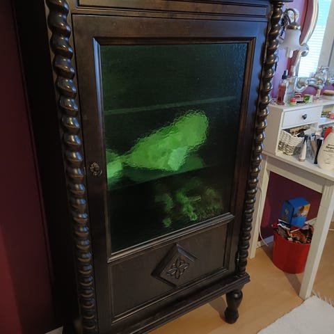 Vanha ja hyväkuntoinen kierrebarokkikaappi. Korkeus 170, leveys 130 ja syvyys 55 cm. Kaksi avainta.