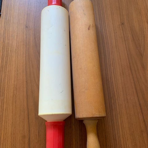 Leivontakaulin, leivonta leivontatarvikkeet punainen, keittiövälineet, keittiövälineitä, keittiötarvikkeet,keittiötarvikkeita, leivontatarvikkeita, sisustus, keräily, vintage puukaulin, puuta