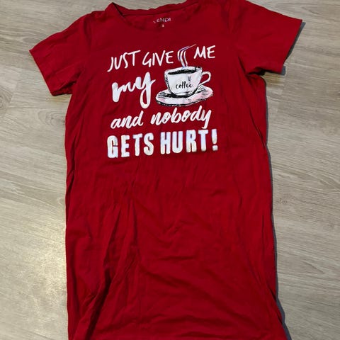 Myydään yöpaita. Yöpaita on Finnwearin tuote. Pohjaväri on turkoosi. Koristeena on valkoisia kukkia. Yöpaitaa voi käyttää myös mekkona.