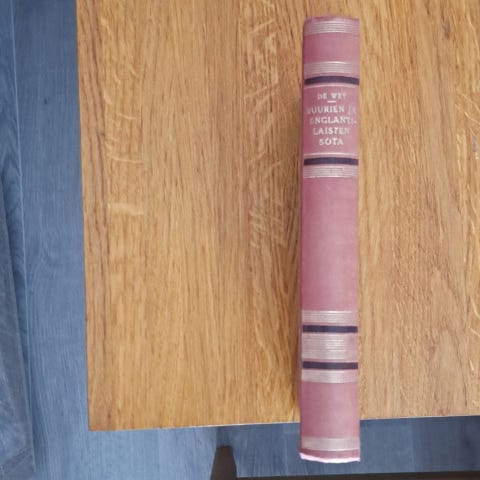 Kenraali Christiaan de Wet : Buurien ja englantilaisten sota, WSOY 1942. Painoksen numeroa ei tiedossa, kyseessä on kuitenkin "Vihtori Peltosen tarkastettu suomennos", luultavasti toinen painos? Kovakantinen. Kansissa runsaasti kulumaa, etenkin reunoissa ja kulmissa. Ikäkellastumaa. Sivujen syrjissä muutama pieni tahra.