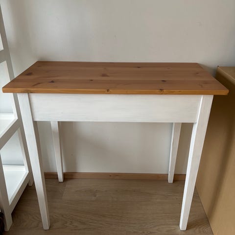 Pöydän pinnassa nalle puh ja nasu. Kulumaa pöydän reunoilla ja pinnassa, katso kuvat.