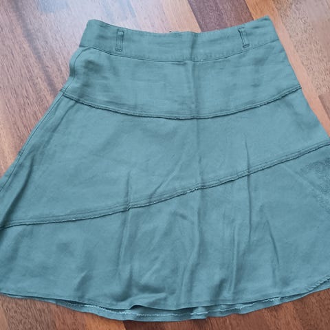 Näyttävä pellava hame, kts. kuva, Mitat: vyötärönympärys koko 85 ja pituus 69 cm.