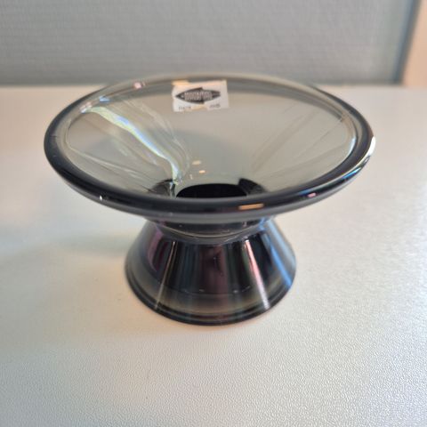 Design Kaj Franck, tuotannossa 1956-1971 (myöhemmin uustuotannossa Iittalan tuotemerkillä). Kynttilänjalat ovat puristelasia, niiden tuotekoodi oli aikoinaan 6405. Tarjolla 2 savunharmaata ja kuvasta poiketen 3 ultramariinin sinistä alkuperäistuotannon kynttilänjalkaa, jotka ovat hyväkuntoisia ja täysin ehjiä. Niiden korkeus on 50 mm ja suurin leveys 85 mm. Hinta on yhden kynttilänjalan hinta, voit ostaa 1-5 kpl.