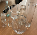 - 1 x Riihimäen lasi (?) maljakko, jossa pohjassa ”R3” 19x9cm (särö reunassa, ks. kuva)