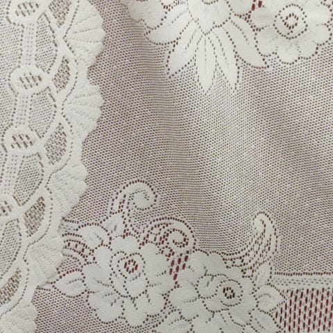 Uusi, iso hennonvihreä pöytäliina valkoisilla pits